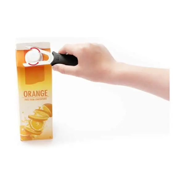 Med CapKey fra Brix får du en lille V-formet åbner, som hjælper dig med at åbne plast skruelåg, så du slipper for at kæmpe med dem. De skarpe tænder får godt fat i låget, så du kan løsne det med få kræfter. CapKey passer til de fleste skruelåg på flasker eller kartoner. CapKey er perfekt til dig med svage hænder, gigt eller lignende problemer.