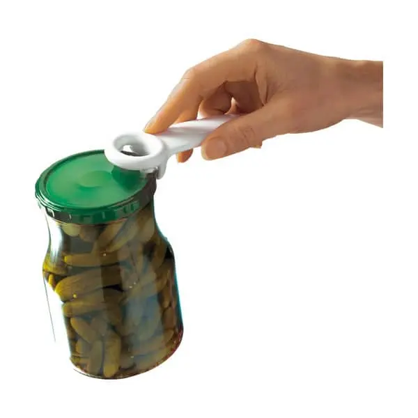 Med Jarkey lågåbner fra Brix behøver du ikke længere at kæmpe med syltetøjsglasset eller det stædige rødbedeglas. Jarkey gør det lettere for dig at åbne krukker og glas med skruelåg, ved at løfte kanten af låget. På den måde fjerner du vakuum i glas og krukke, så du let kan skrue låget af.