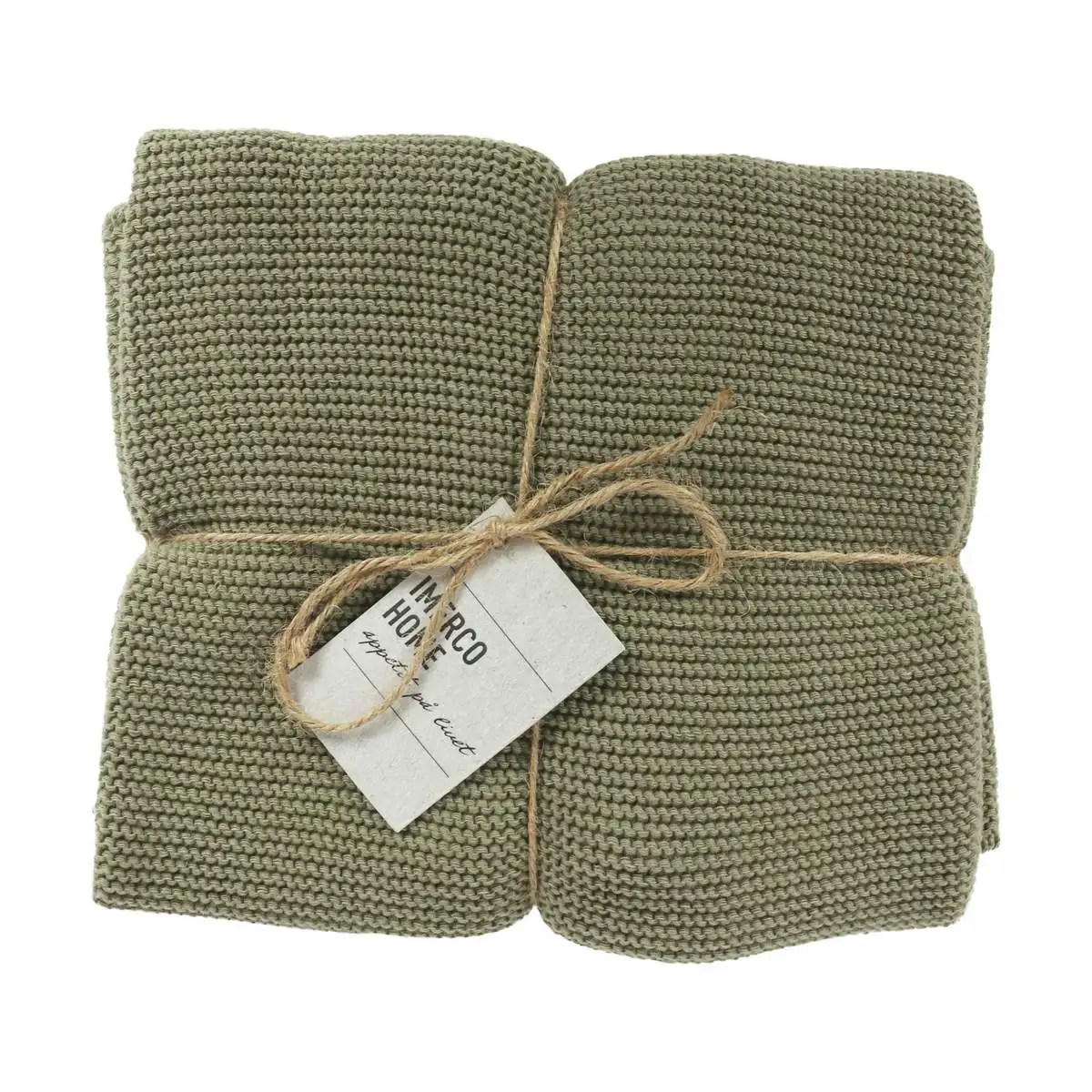 Giv dit køkken et strejf af nostalgi med 2 stk. grønne, strikkede køkkenhåndklæder fra Cook & Baker kollektionen. Håndklæderne i 100% bomuld har et hyggeligt og hjemmelavet udtryk og kan være køkkenets søde detalje. Du får 2 håndklæder, der hver måler 35 x 50 cm.