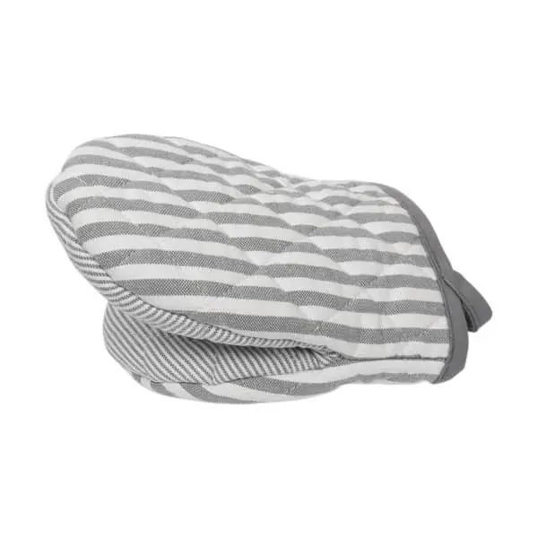 Ovnhandsken er udført med en tyk polstring, der beskytter dine hænder mod varmen. Handskens brede greb gør, at det er nemt at gribe om grydehåndtag og varme fade direkte fra ovnen. I 100% bomuld med to slags dekorative striber vil handsken pynte i køkkenet, selv når ikke er i brug.