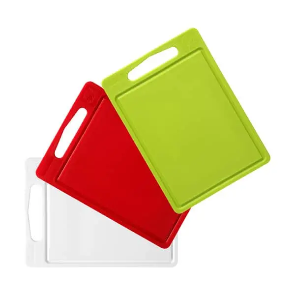 Du får 1 pakke med 3 skærebrætter i henholdsvis: hvid, rød og lime.
