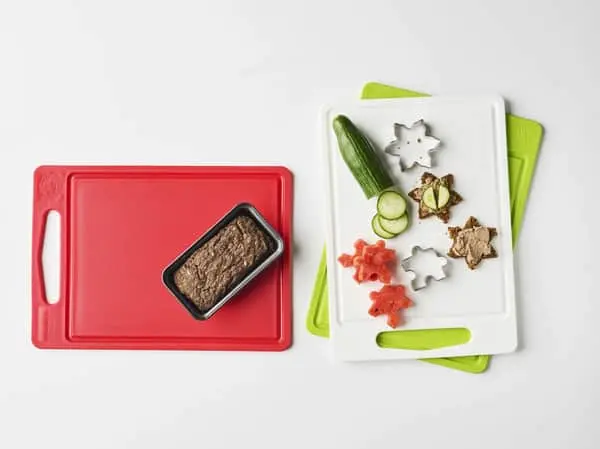 3 plastskærebrætter fra Cook & Baker. Hold god køkkenhygiejne ved at bruge forskellige skærebrætter til forskellige madvarer. Brug for eksempel det limefarvede skærebræt til rå grøntsager og frugt, det røde til råt kød, fjerkræ og fisk og det hvide til brød og andre tilberedte madvarer som steg, farsbrød og så videre.
