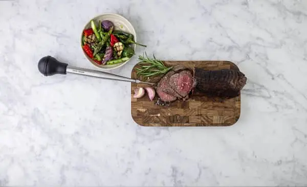Brug stegepipetten til at samle kødsaft, olie og marinade op løbende, mens eksempelvis din steg er i ovnen. På den måde kan der løbende fordeles marinade, så sprødhed og smag ikke går tabt.