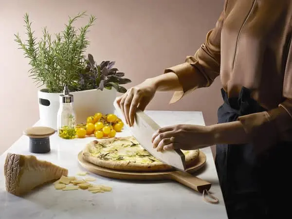Træskærebrættet fra Eva Solo Nordic Kitchen er ikke kun praktisk, når du skal skære grøntsager og brød. Det er også smukt at servere tapas og andre små retter på.