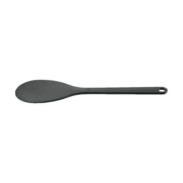 Køkkenværktøjet i kunststof tåler op til 220°C, men tåler ikke at blive efterladt og glemt i en glohed gryde eller pande.