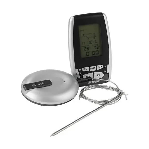 Termometeret giver dig en målefunktion for 7 forskellige kødtyper, så du kan få saft og kraft ud af både lam og gris. Desuden medfølger en timer, display med lys og signal ved op til 30 meters afstand, så du kan holde øje med din steg fra alle hjemmets rum.