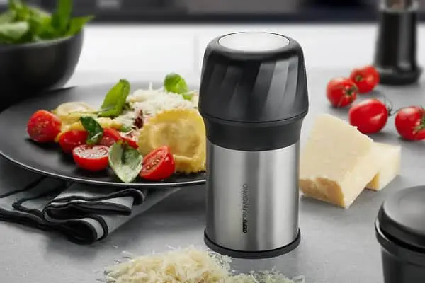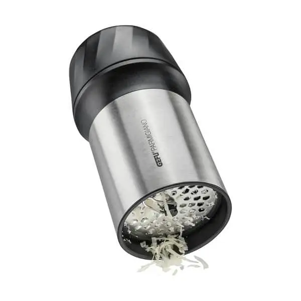 I en travl hverdag er Parmigiano rivejernet fra Gefu helt uundværlig. Med sine to udskiftelige riveskiver, kan du nemt fremtrylle både flager og fintrevet produkter fra hård ost, blokchokolade eller nødder på ingen tid.