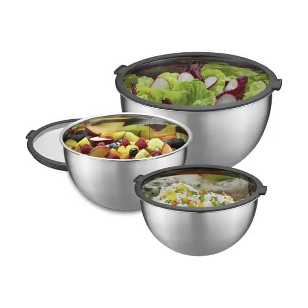 Til tilberedning, servering og opbevaring 3-delt skålsæt inklusive lufttætte opbevaringslåg Stables inde i hinanden for pladsbesparende opbevaring