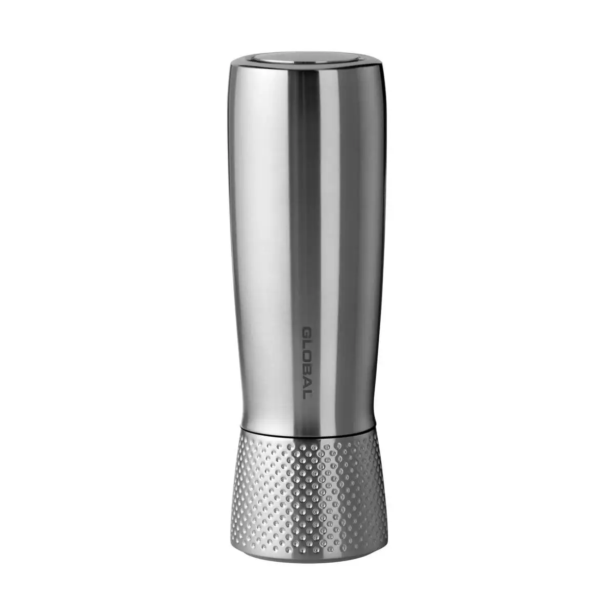 Kværn salt hurtigt og nemt med denne saltkværn fra Global. Saltkværnen fra Global er designet til at kunne kværne lige fra groft havsalt til bjergsalt og sydesalt. Det keramiske kværnværk kan indstilles, så du kan kværne saltet i den finhed, som du ønsker. Global saltkværnen er produceret i rustfrit stål og måler 19 cm i højden. Der findes tilsvarende en peberkværn i samme enkle og stilrene design.