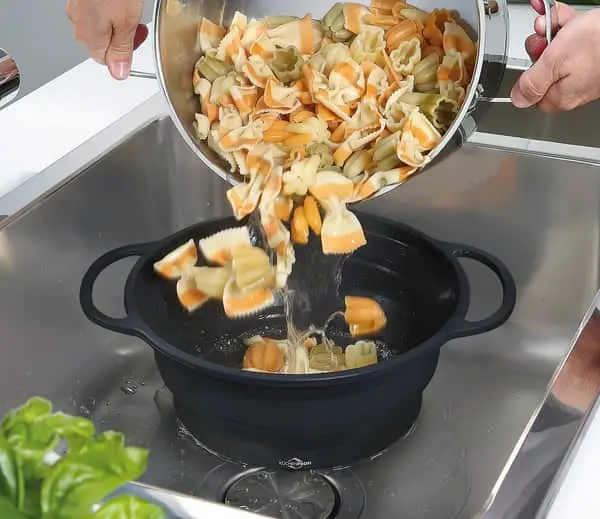 Uanset om det er en risret eller hurtig pasta, så er der ingen vej udenom det praktiske dørslag fra Küchenprofi. Den har håndtag, som er nemme at holde. Når dørslaget ikke er i brug, kan du folde det sammen.
