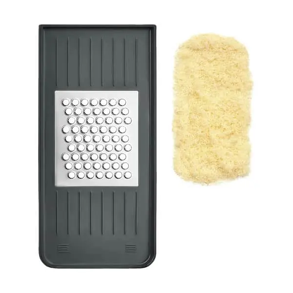 Rivejernet har et ergonomisk greb og en skridsikker beholder, så det står godt fast på underlaget, når du arbejder med det. Beholderen er på 1,5 liter, som giver dig rigelig af plads til dit rive- og snittearbejde.