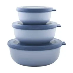 Mepal har lavet et lækkert opbevarings- og serveringsskålesæt, som er både praktisk og dekorativ. Sættet består af 3 skåle med låg i størrelserne 350 ml, 750 ml og 1250 ml.