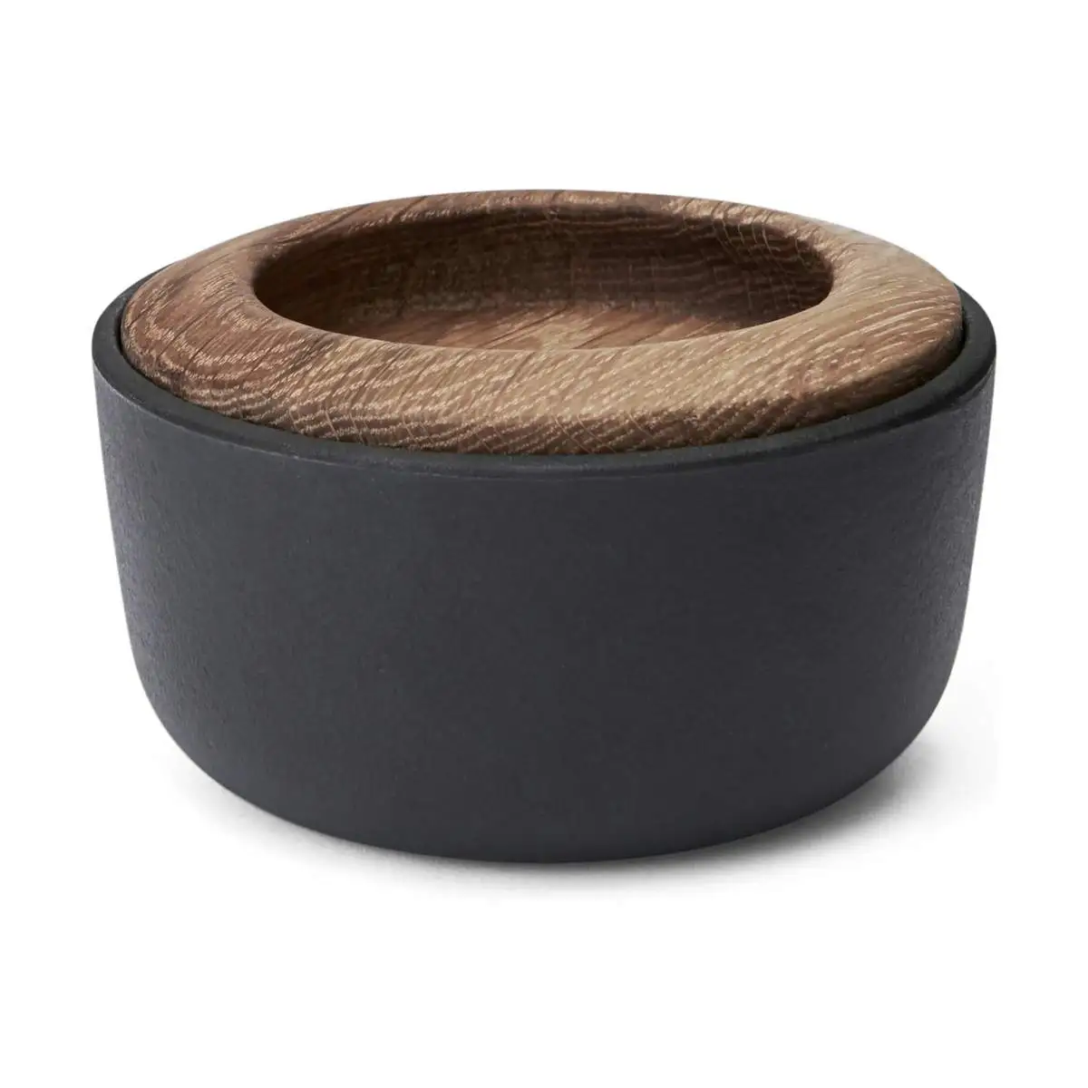 Kit er et smukt saltkar fra Morsø. Kombinationen af det rå støbejern og det gyldne egetræ giver en flot kontrast og drager paralleller til det unikke univers, Morsø er kendt for.