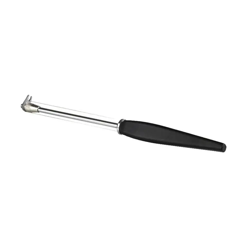 Osteskærer med metalklinge og mulighed for at skære to forskellige skivetykkelser. Toppen er forsynet med en praktisk minigaffel, så du på hygiejnisk vis kan håndtere osteskiven uden at røre ved den.