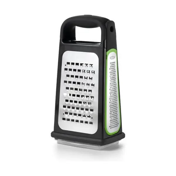Uanset hvad du skal rive eller snitte, så klarer OXO rivejernet jobbet. Rivejernet har 4 forskellige riveflader og en beholder til opsamling.