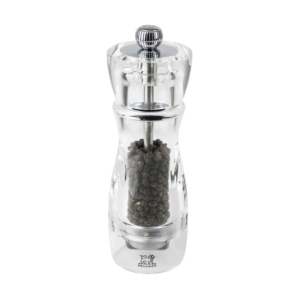 16 cm. Acryl. Peugeot kværne er blevet produceret i over 160 år og regnes for noget af det bedste, man kan købe. Det vises bl.a. ved, at der gives livsvarig garanti på kværneværket. Peugeot kværne er håndslebne og formet 100% til peberkorn og ved hjælp af indstillingsmuligheden, er der fri mulighed for enten groft kværnet peber til bøffen eller fint kværnet til f.eks. saucer. Der er også Peugeot stålkværn i saltkværnene, som er specielt legeret, så de ikke ruster.