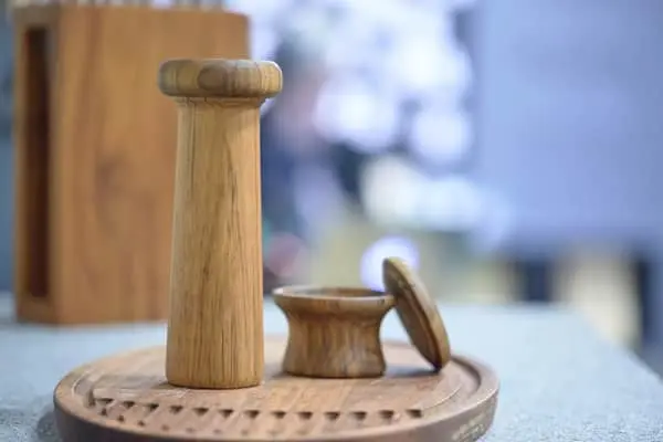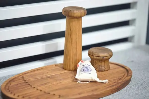 Kværnen fra RISVIG Lignus serien designet sammen med saltkarret og udviklet i samarbejde med Læsø Salt.