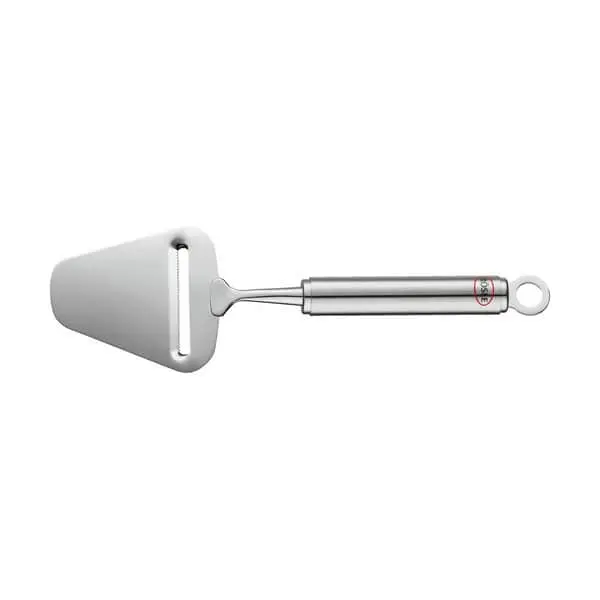 Rösle ostehøvl har et fint savtakket blad, der giver flotte skiver af faste oste. Brug den evt. sammen med Rösles andre køkkenredskaber til os, som fx osteskæreren eller ostekniven.