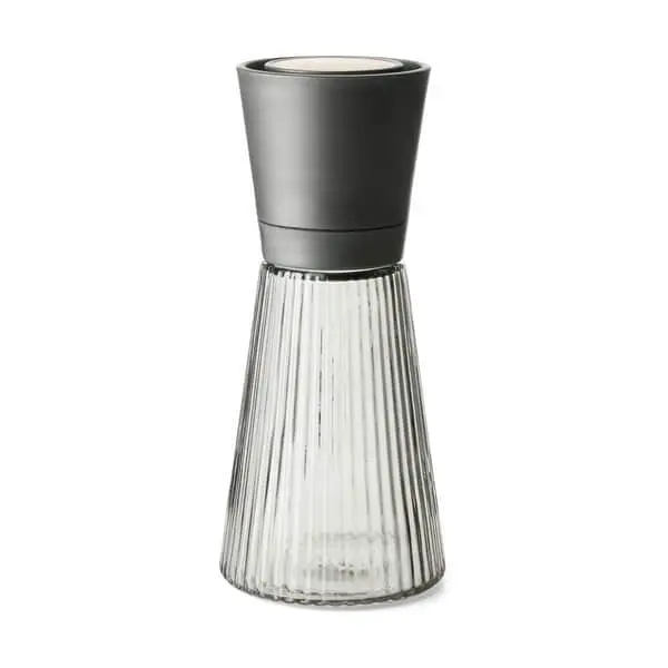 Grand Cru Nouveau kværnen er fremstillet i smukt mundblæst glas med en holdbar og funktionel top – og flotte, minimalistiske riller. Med sit røgfarvede glas og den sorte top skaber Grand Cru Nouveau kværnen et helt særligt udtryk, der innovativt fremhæver Grand Cru-designet med fokus på geometrisk elegance i stil, struktur og farve. Kværnefunktionen i Grand Cru Nouveau kværnen er placeret i toppen, hvorved æstetik og funktion kombineres, så du uden det mindste drys kan sætte krydderi på borddækningen både til hverdag og fest.