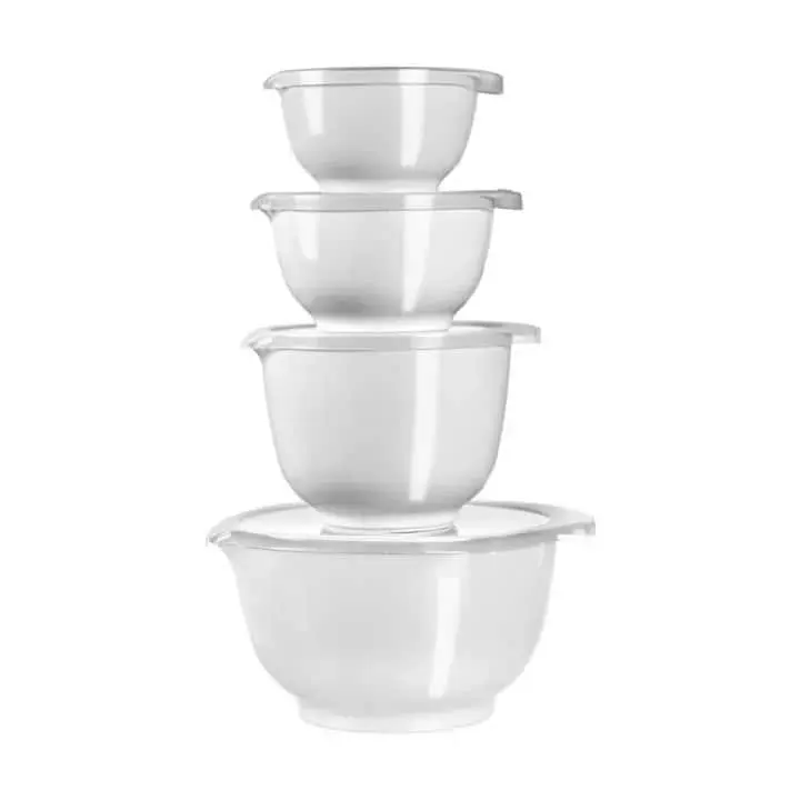 Skålene er udstyret med en skridsikker gummiring i bunden, så de står fast, når du rører ingredienser sammen i dem, eller når de står stablet og opbevarer madvarer i køleskabet.