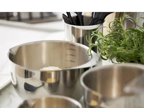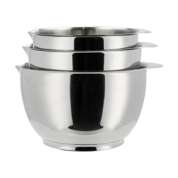 De flotte og eksklusive røreskåle kommer i et sæt af 1,5, 2 og 3 liter. Skålene er produceret i 18/8 stål og har satin-finish indvendig og blank finish udvendig.