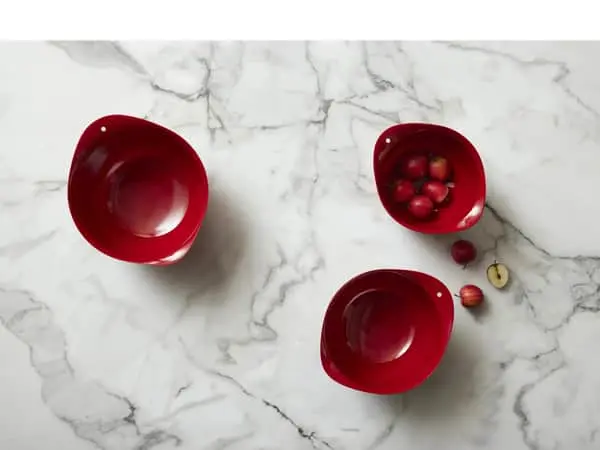 Victoria-skålen har stadig en høj funktionalitet, men dens sider, håndgreb og hældetud er ændret en smule. Desuden har skålens bund fået drænkanaler, hvilket sikrer, at al vand kan løbe af, når skålen sættes i opvaskemaskinen.