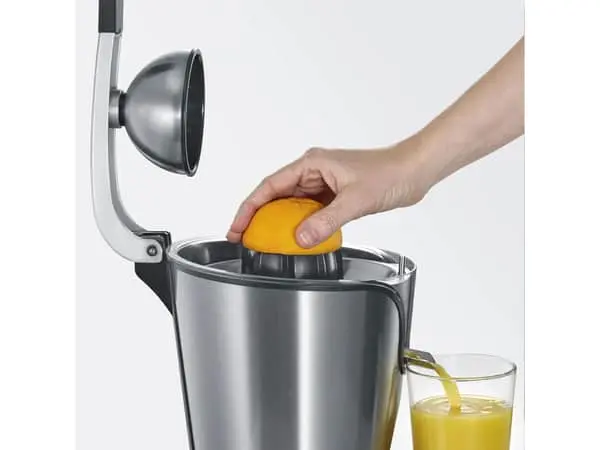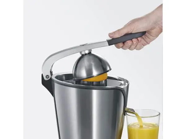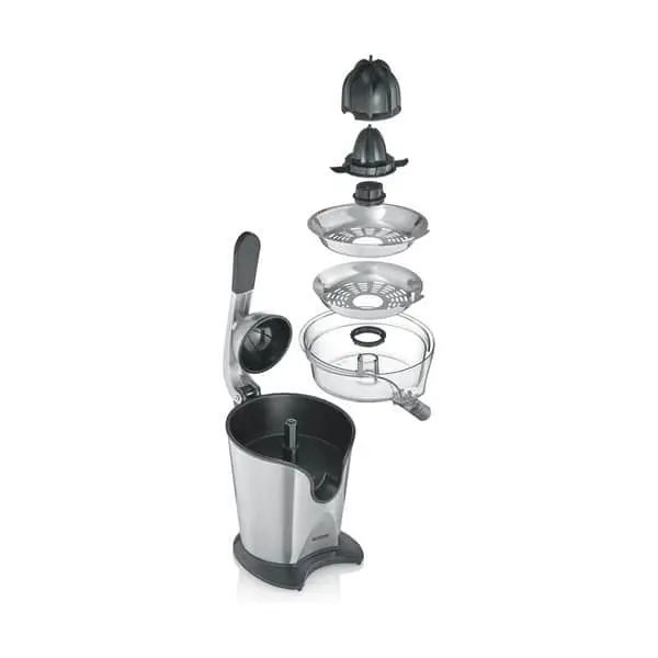 Citruspresseren fra Severin giver dig lækker, friskpresset juice på ingen tid. Den passer til alle slags citrusfrugter, så der kan laves juice til enhver smag. Citruspresseren betjenes nemt og med minimal anstrengelse – du trykker blot håndtaget ned, hvorefter saften presses ud af frugten. Nemmere bliver det ikke!