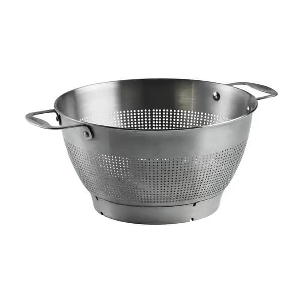 Undgå at bakse med låget på gryden, når du skal hælde vand fra kartofler, pasta eller grøntsager. Brug i stedet dette rummelige dørslag, så du hverken skolder eller brænder dig.