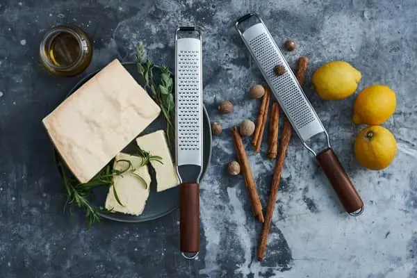 Riv nemt citron, parmesan og chokolade på de to fine rivejern fra Timm Vladimir Kitchen.