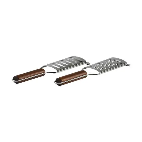 Med det grove rivejernssæt fra Timm Vladimir Kitchen kan du rive gulerødder og andre slags grøntsager så nemt som ingenting. Det lækre træhåndtag giver et godt greb og med den skridsikre kant for enden kan du nemt stemme imod bordet, så rivejernet ikke glider. Der er to rivejern i pakken, det ene lidt grovere end det andet, og begge rivejern er lavet til at rive begge veje, så du kan rive dobbelt så hurtigt.