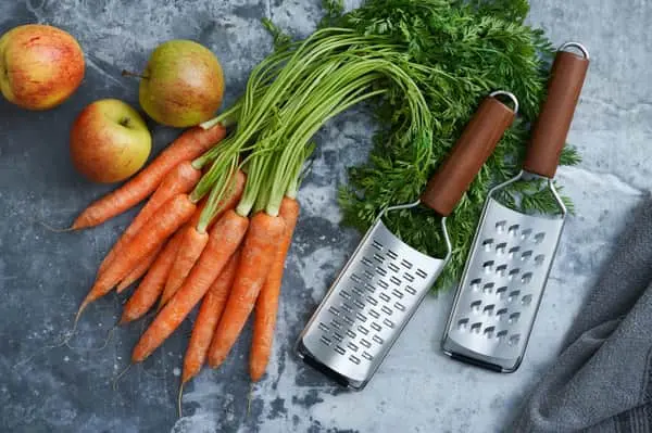 Riv nemt gulerødder og andre grøntsager på de to grove rivejern fra Timm Vladimir Kitchen.