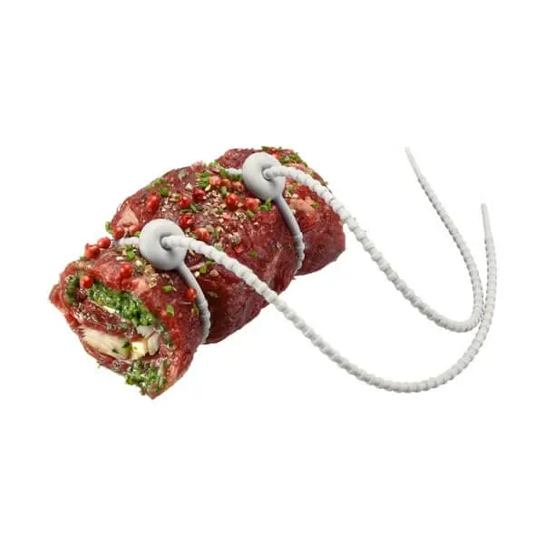 Når stegen skal snøres, eller bundtet med krydderurterne skal samles er silikone-snorene fra Westmark perfekte! Efter brug kan du vaske dem i opvaskemaskinen, så du kan bruge snorene igen og igen.Kødsnorene kan bruges på panden, i gryden, i ovnen og mikroovnen – tåler temperaturer op til 260º C.