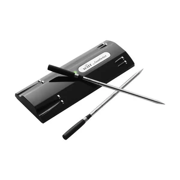 Sensorerne i kødnålen måler både det varmeste og det koldeste punkt, så den kan fortælle dig præcist, hvornår maden vil være færdig. Samtidig er der en integreret sensor i håndtaget, der måler lufttemperaturen. Dette er især smart, hvis du griller under låg og har brug for at kende temperaturen i gryden.