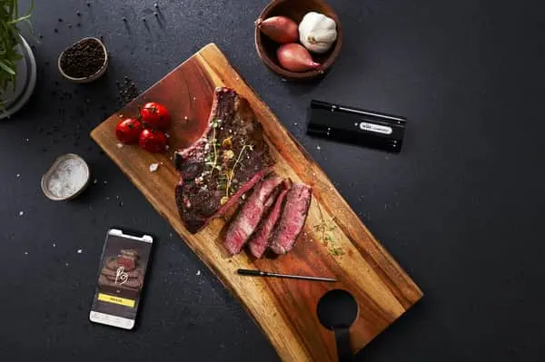 Med den tilhørende app kan du følge med i, hvornår din mad er færdig. Herfra kan du også bestemme om dit resultat skal være rare (rødt), medium (rosa) eller well done (gennemstegt). Stegetiden udregnes ud fra kødnålens registrering af temperaturer. Brug gerne alarmfunktionen i appen som en påmindelse, der fortæller, hvornår du skal gå i gang med at tilberede tilbehøret, så alt mad er klar samtidig.